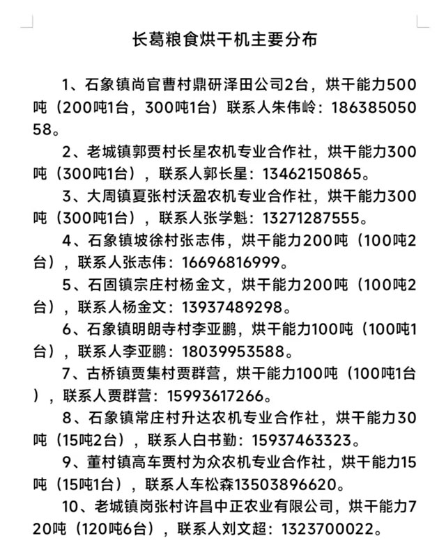 长星农机专业合作社是我市粮食烘干点之一,据了解,我市有10个粮食烘干点,19台粮食烘干机,日烘干能力2500吨,分布于石象、老城、大周等镇。