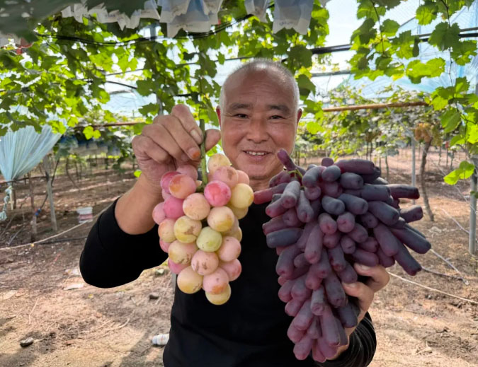 他不仅要从头学种葡萄,更做了一个大胆决定——放弃本地常见的巨峰,改种大家都没见过的阳光玫瑰、蓝宝石等高端品种。